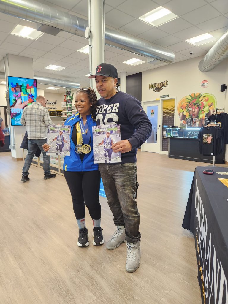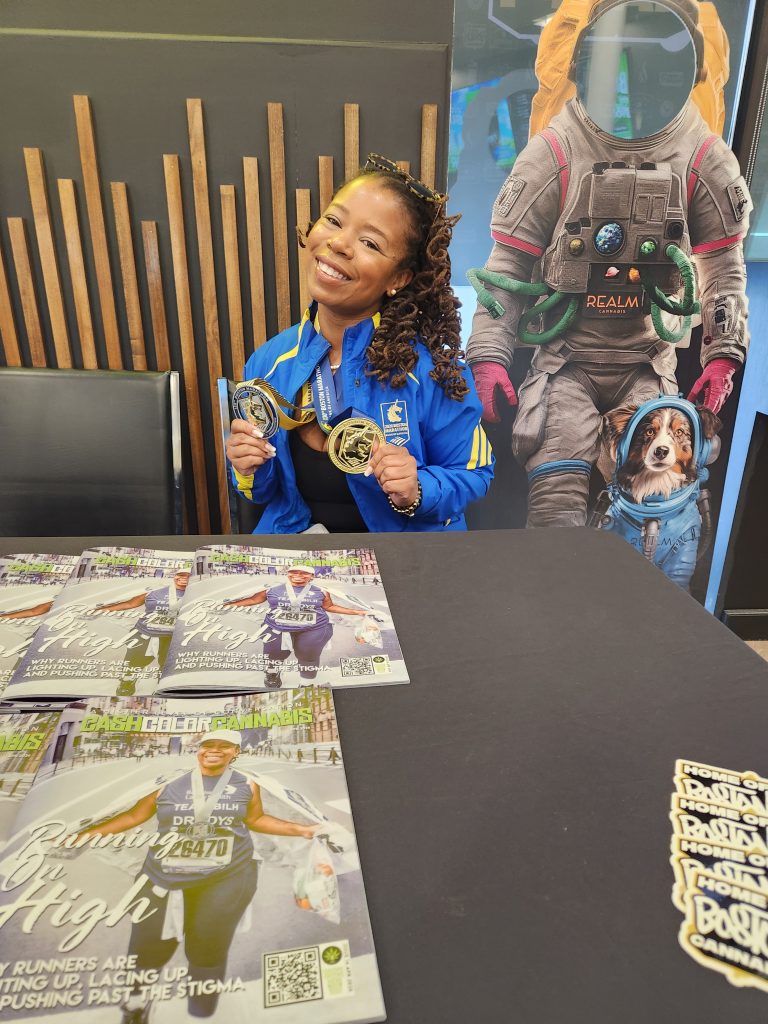 In town for NECANN, it was the perfect opportunity to introduce new audiences to A Higher Level of Conversation. Lucky for us, the Drudy’s Ledbetter, the star of this issue, came by to share the moment with us. She even brought out her marathon medals.